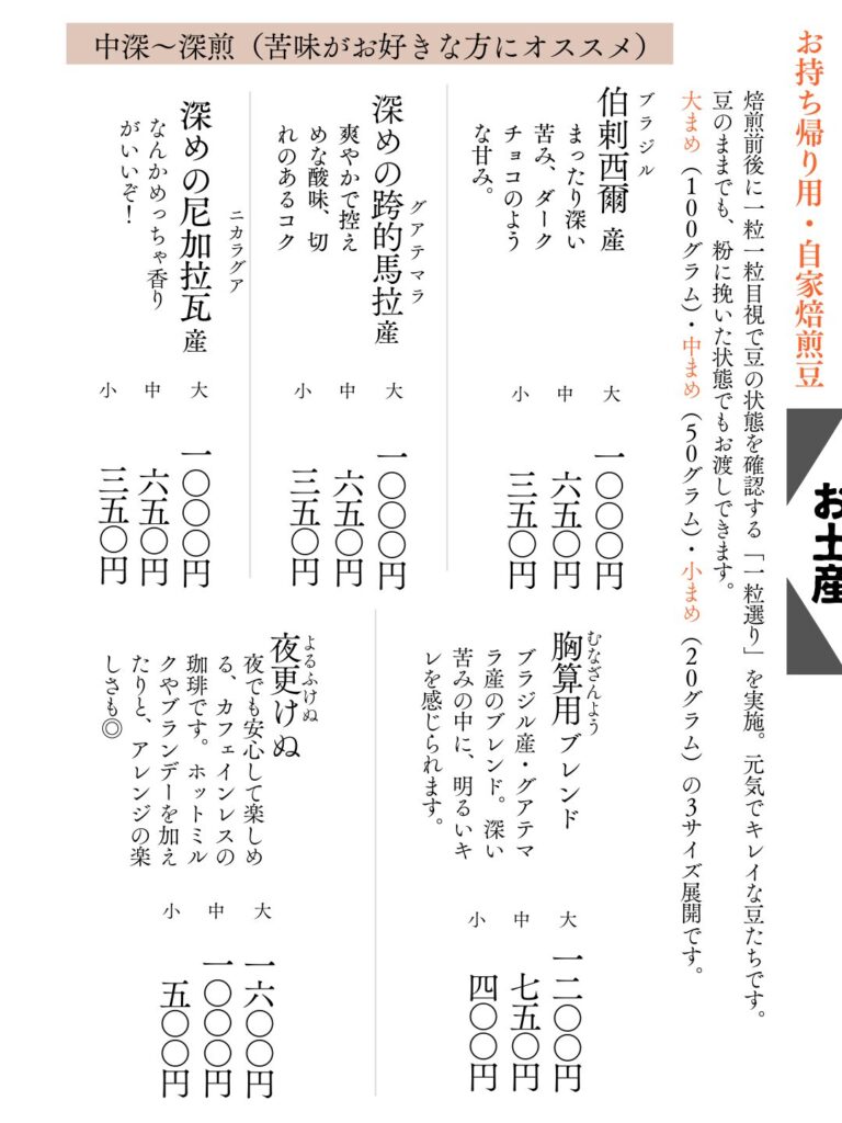 当店の最新のお品書きです。