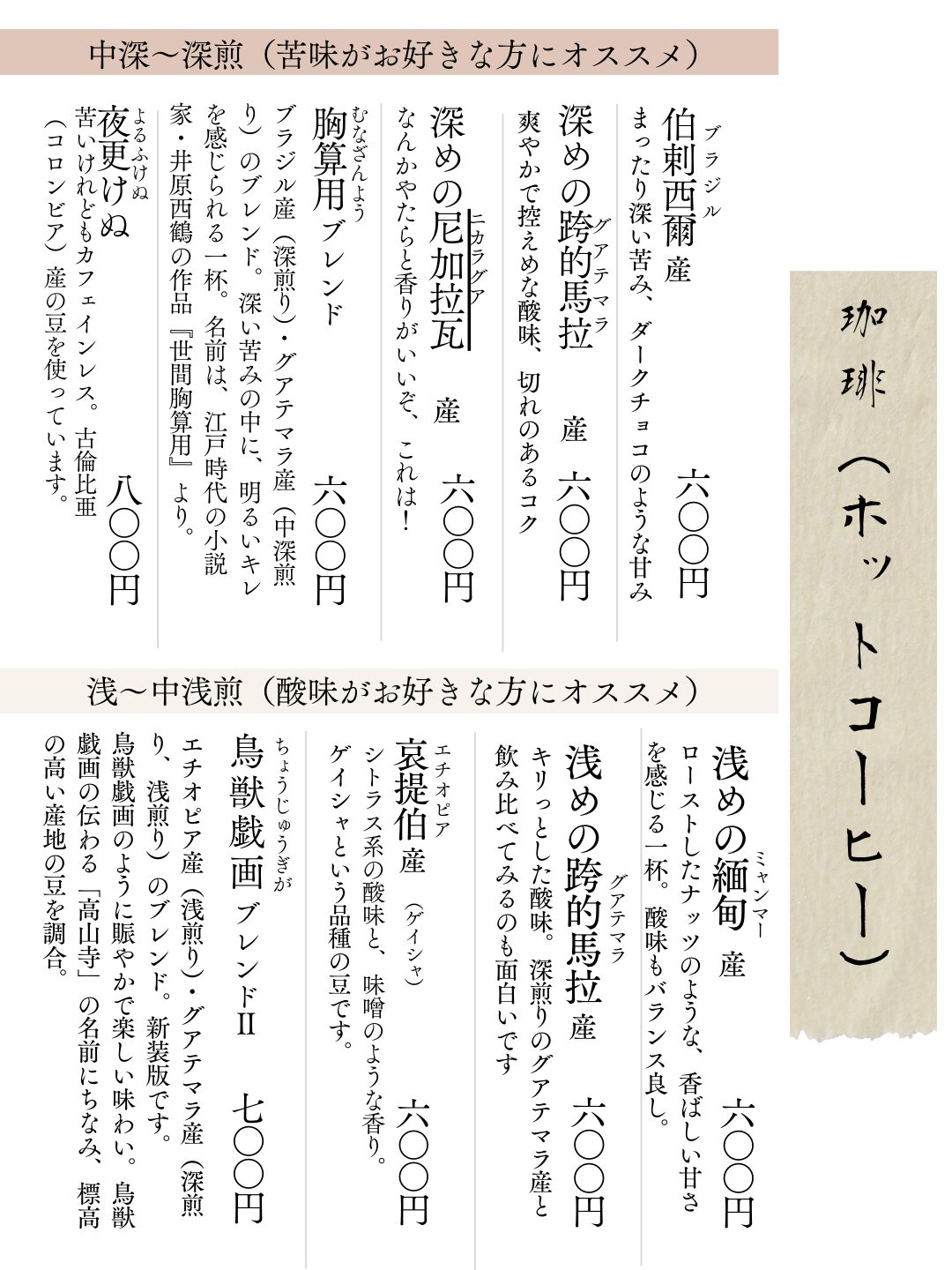 お品書き