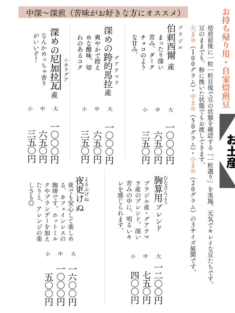 当店の最新のお品書きです。