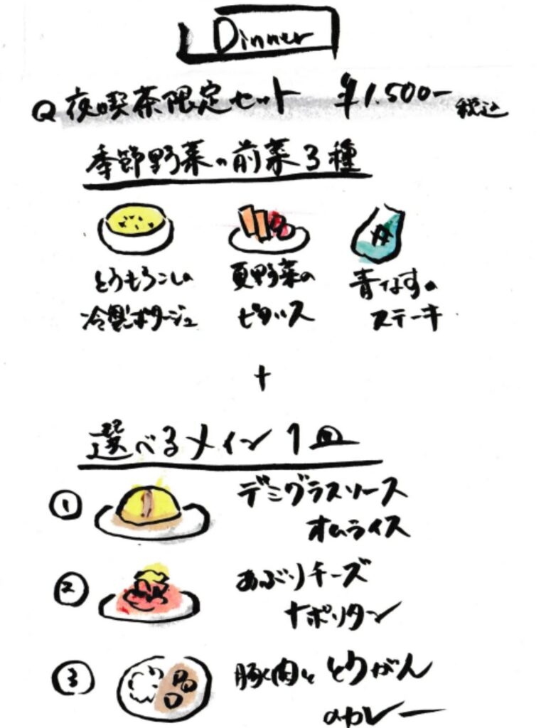 こんばんは。8/10(日)の一夜かぎり、夜喫茶ふでまめのお品書きです。